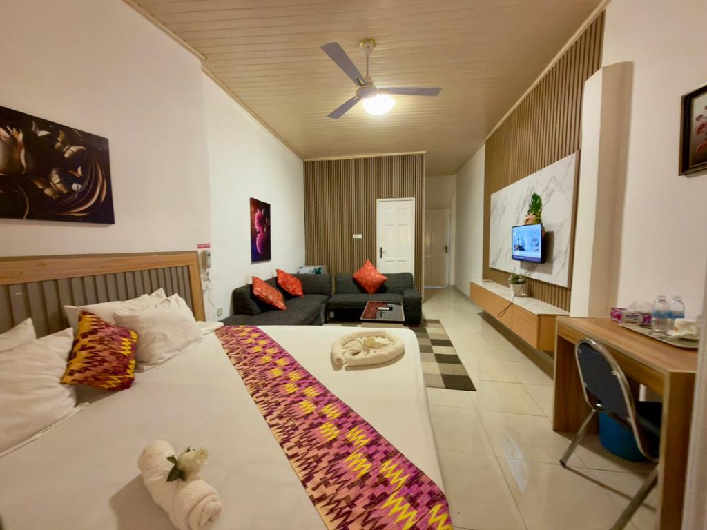 offers well-furnished rooms, a serene environment, and a range of amenities, making it a convenient choice for both leisure and business travellers. +233208208120